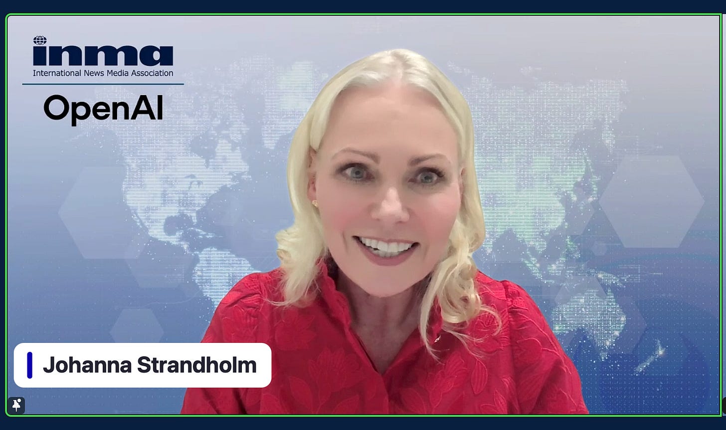 Johanna Strandholm is a senior executive at Alma Media, Finland’s leading digital media group operating across 11 European countries. She spoke at an INMA webinar attended by more than 360 publishing professionals from 58 countries.