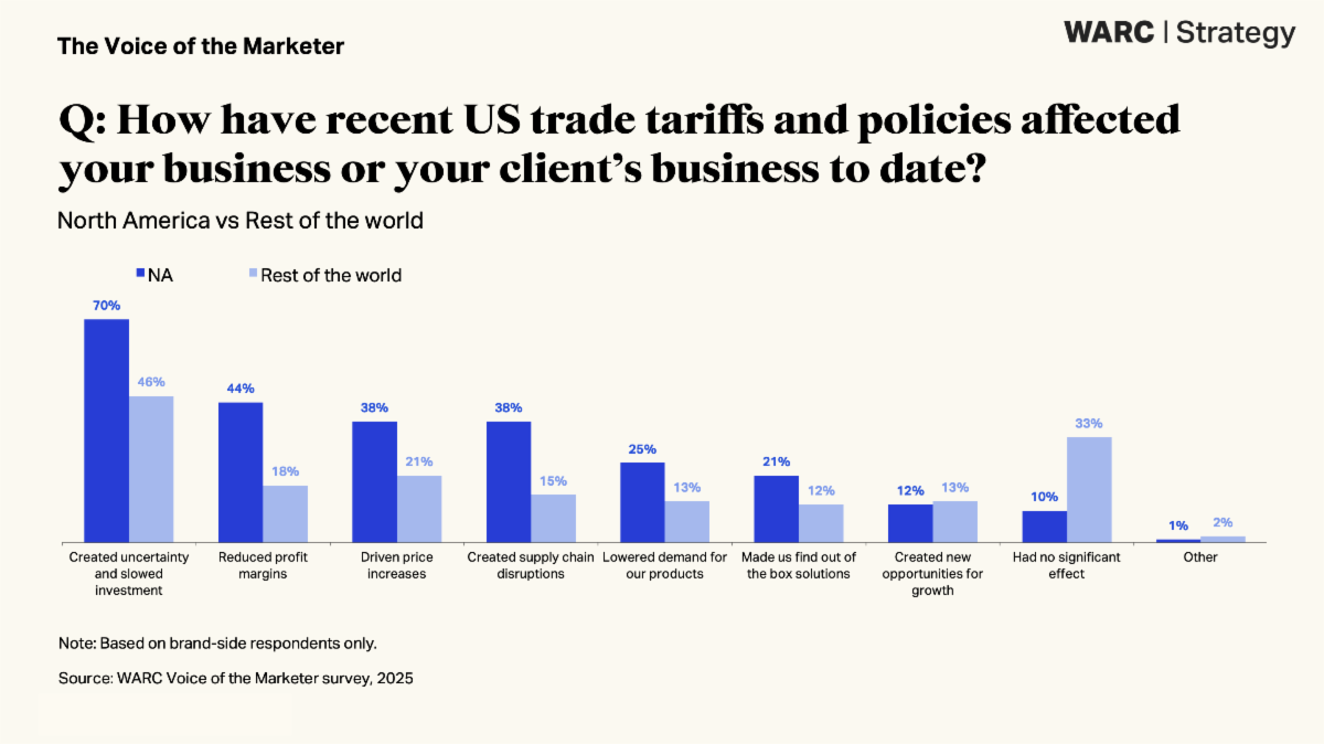 Aditya Kishore, Insight Director at WARC, puts it bluntly: “A significant red flag for marketers is the tension between poor macroeconomic visibility and the need to plan for long-term business growth.”
