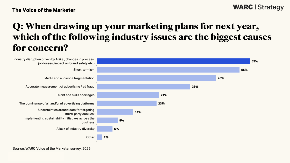 WARC survey shows 59% expect better business in 2026 but only 19% see budget increases—short-termism and AI anxiety dominate planning