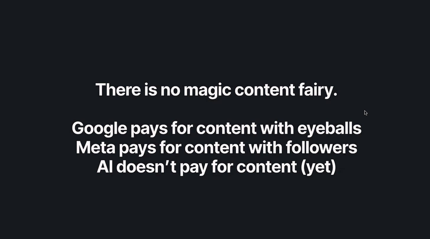 Dr Jonathan Roberts, Chief Innovation Officer at People.Inc. laid out this maths in a recent INMA webinar on content licensing. His conclusion: you can’t build a sustainable business model on a 100,000x cost disparity where one side pays nothing.