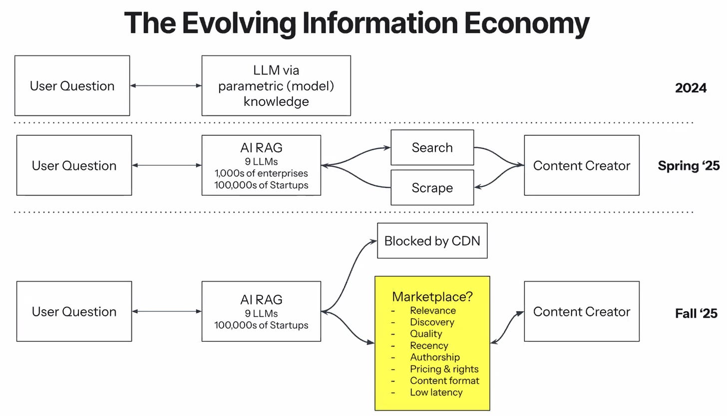 Clear provenance for every piece of content. Quality signals that distinguish expert analysis from random blog posts. Flexible pricing models tailored to the use case. Feedback loops that help content creators see the value of their work.
