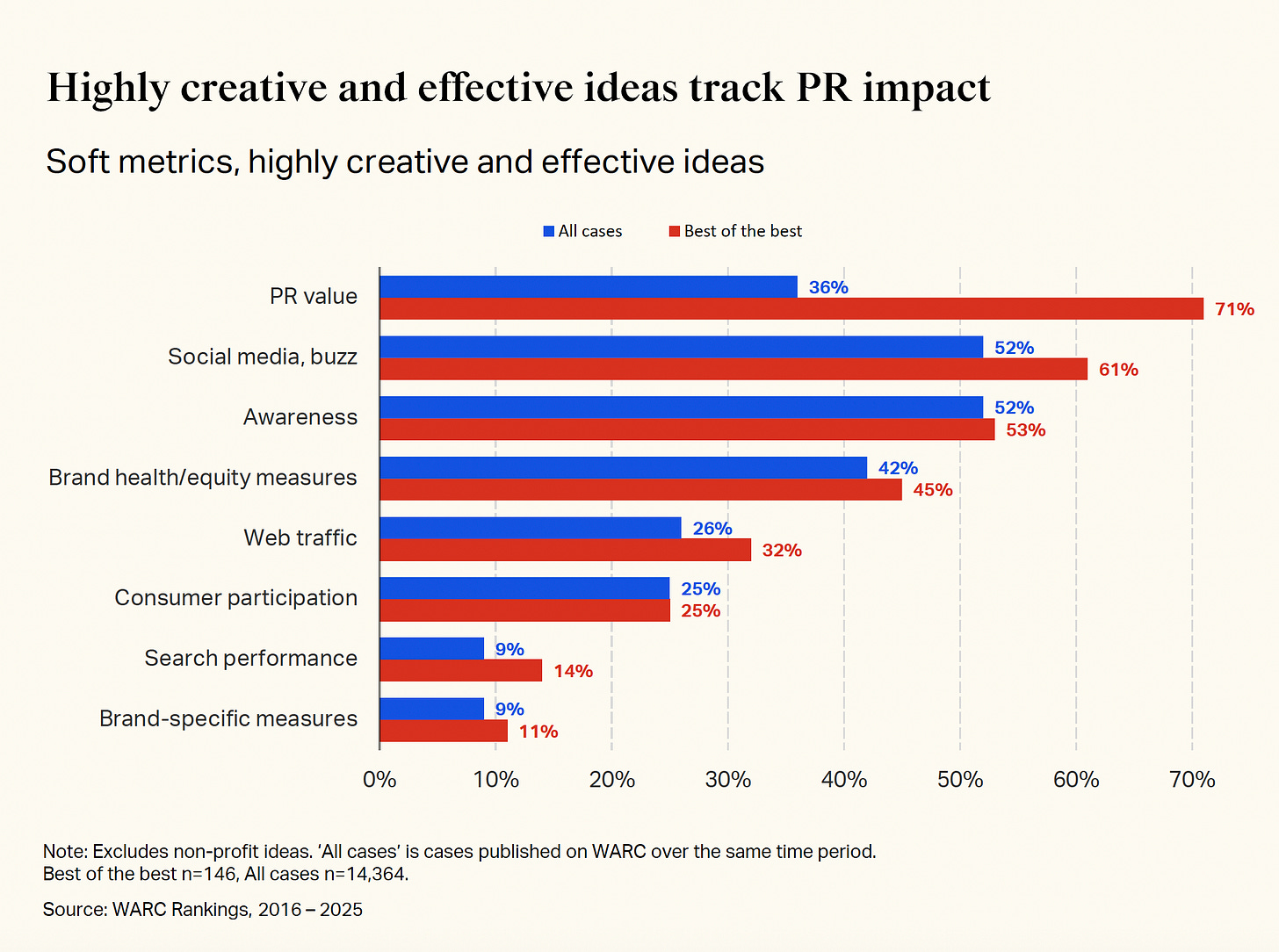 The evidence now overwhelmingly supports creativity’s commercial value. The question is whether brands and agencies will structure their work to capture and demonstrate this impact. That means investment in measurement capabilities, adequate creative commitment through budget and duration, multiple creative strategies in combination, and campaigns designed for earned attention, not just paid reach.