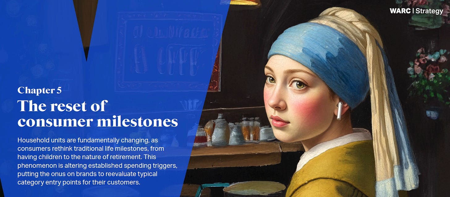 53% of marketers believe segmentation based on age, income, social class, and family structures isn’t really effective anymore. Traditional milestones—marriage, children, home ownership, university—are being delayed or forgone entirely by younger generations.