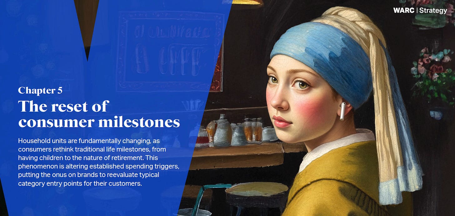 Household units are fundamentally changing, as consumers rethink traditional life milestones, from having children to the nature of retirement. This phenomenon is altering established spending triggers, putting the onus on brands to reevaluate typical category entry points for their customers.
